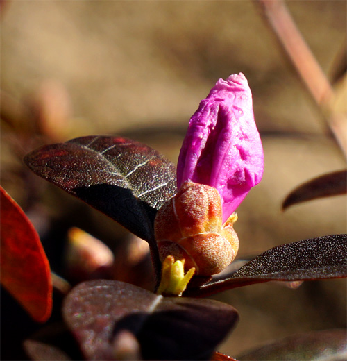 - 葉 : Snow Roseとかrusty leaved alpenrose 錆びた葉のアルペンローゼ とも呼ばれる。