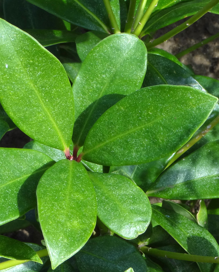 - 葉 : 長さ 5〜10cm 程の長楕円形で表面に光沢があり、新葉は白色の斑入りのようで綺麗です。