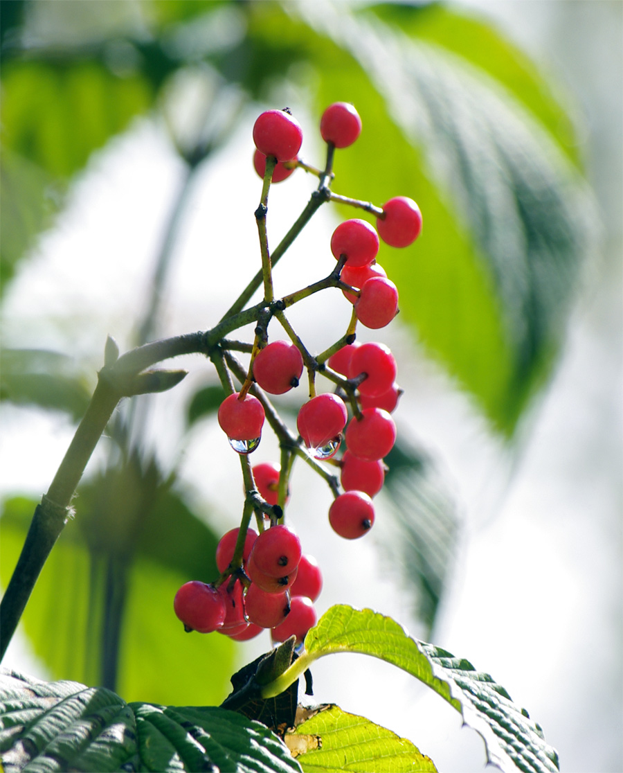 - 実 : 7〜8mm程の楕円で多数つけ、9〜10月ごろ赤く熟し、華やかです