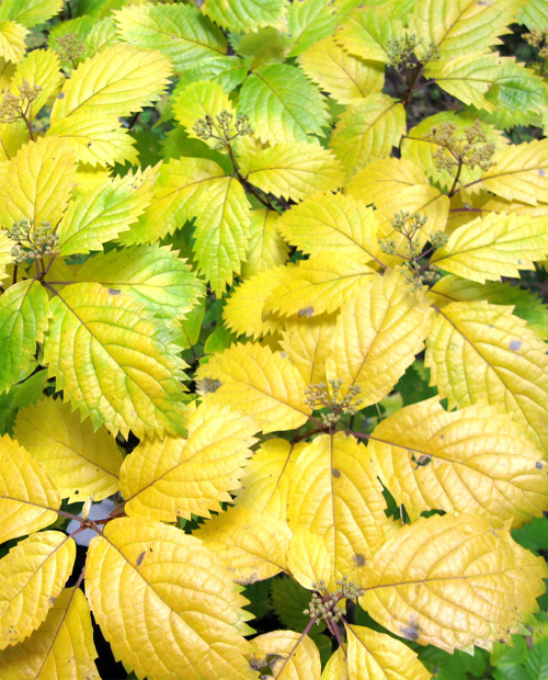 - 葉 : L3〜10cm、W3〜5cmの卵形で、縁には深い鋸歯があり、秋の黄葉も美しい