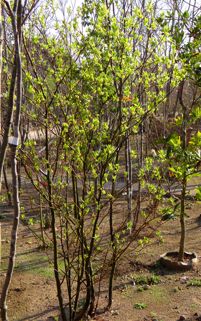 - 花 : 3〜4月頃、芽吹きと同時に散形花序をだし、淡い黄緑色の花を多数つけます