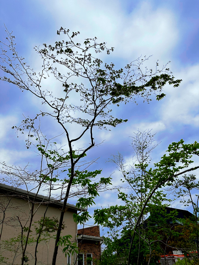 春先特有の強風で新芽が痛むの心配ないよう、芽吹き遅くて正解