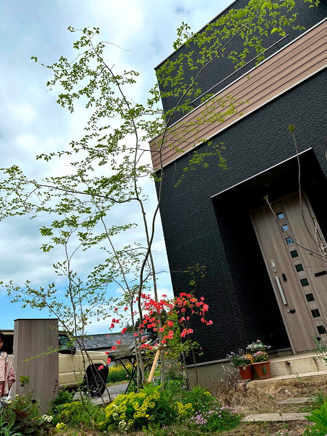 他に、アオハダ、ナツハゼ、エゴノキ、ヤマツツジ、オトコヨウゾメ、アオダモ、ミツバツツジ、サワフタギ、コナラ、ネジキ、バイカツツジ、大谷石のアプローチ等々で広いお庭を彩ってます。