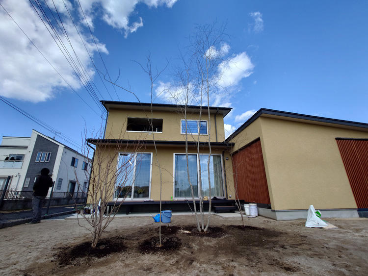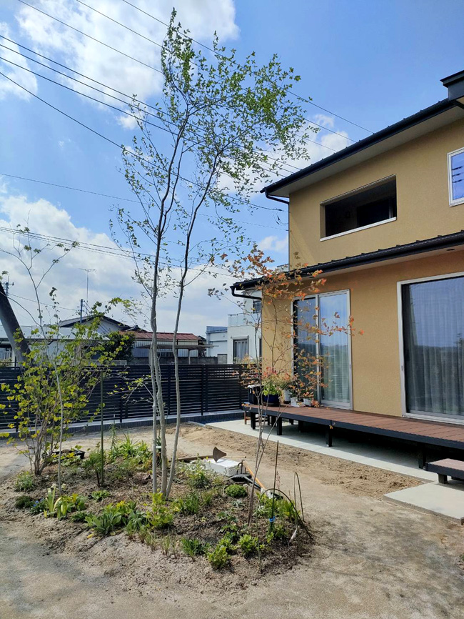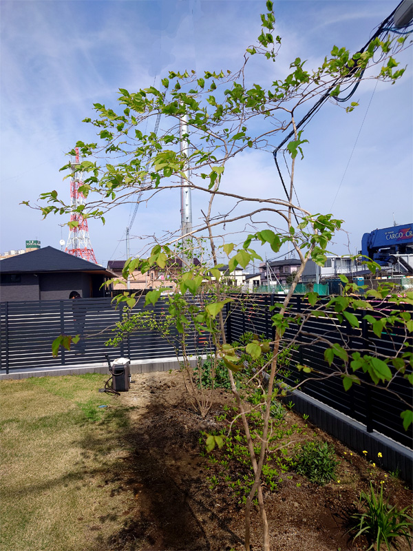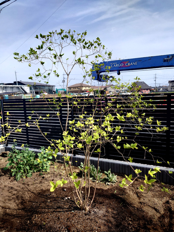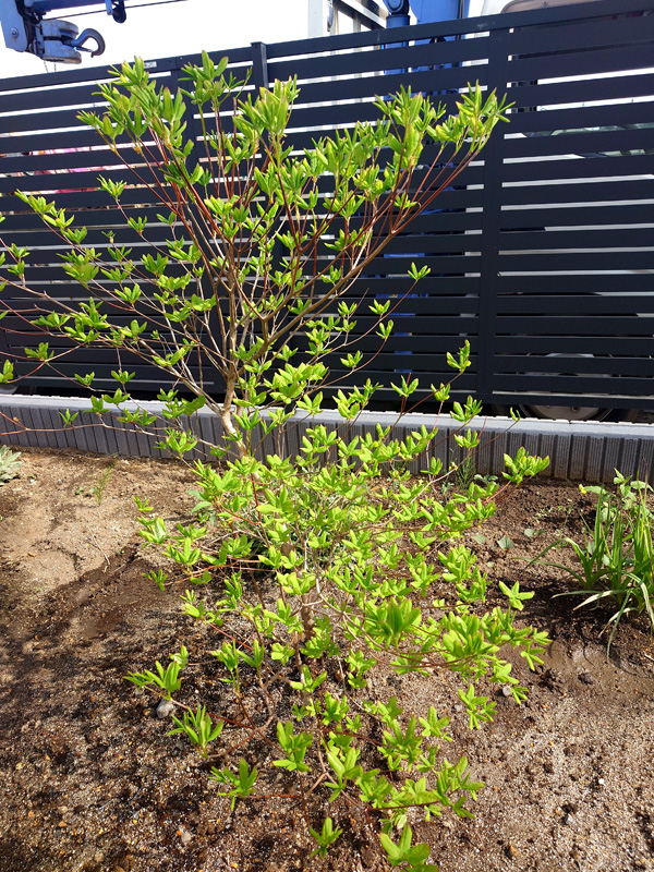 | シンボルツリーに6mアオハダ、ナツハゼ、アオダモ、マルバノキ、ヤマブキやコウヤボウキ、春蘭、猩々袴を植え、次回はコアジサイ等々小物を植えます。 | |