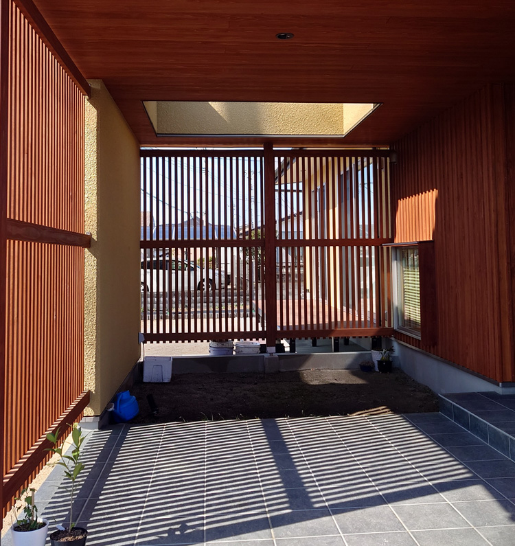 | 中秋の名月はここから観月会 | 玄関にある坪庭にバイカツツジがお似合い |