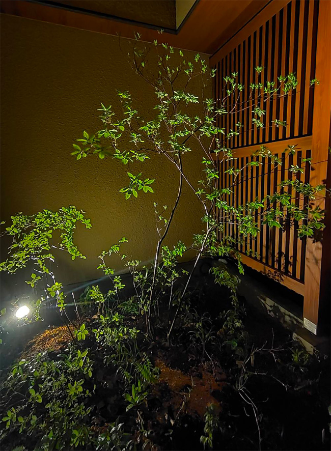 ![]() | 緑が冴える坪庭のライトアップ |