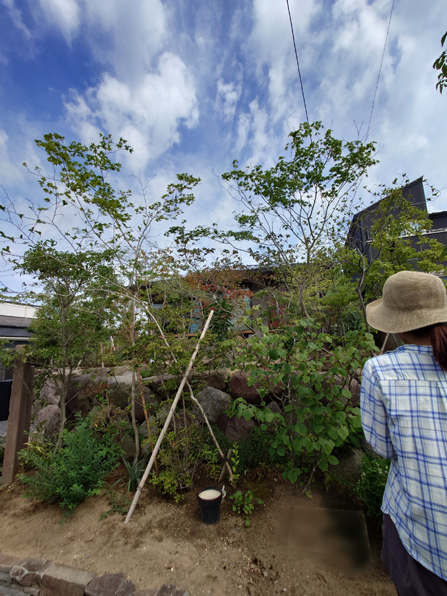 オオモミジやアオハダ、コアジサイ等々はオーナーご夫妻で掘りあげました。