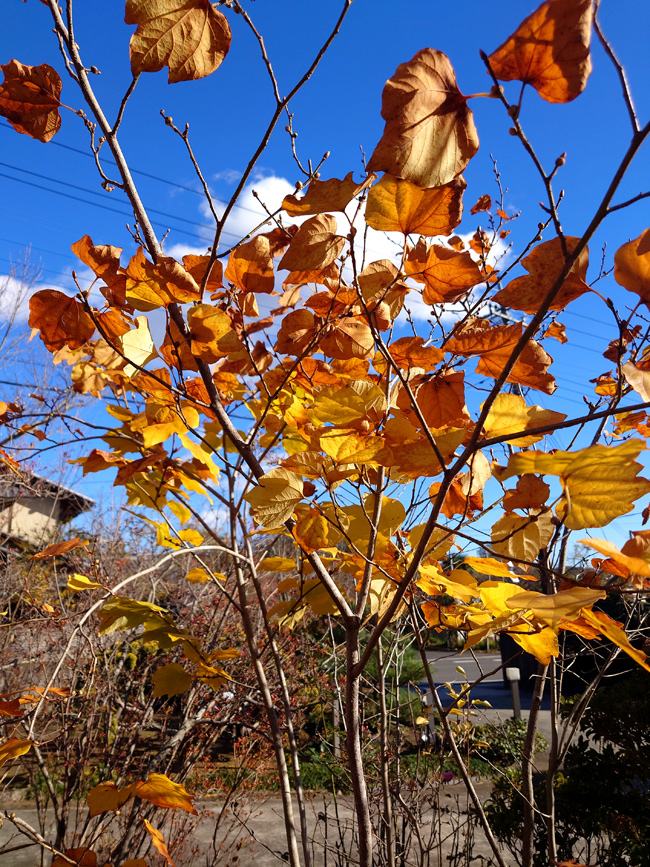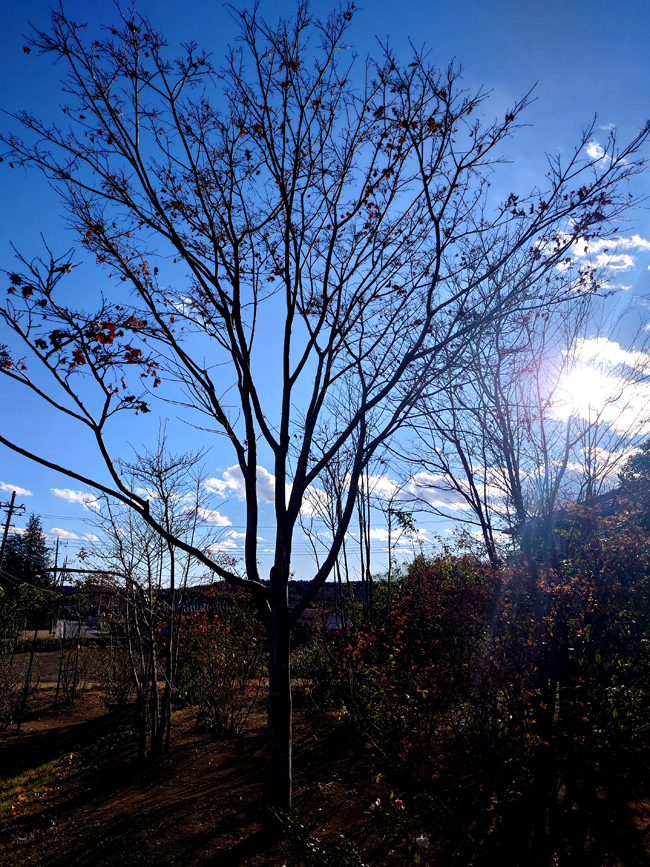 天候不順で葉を落とした木々が多く、紅葉が一部で残念、シンボルツリー におすすめはオオモミジ