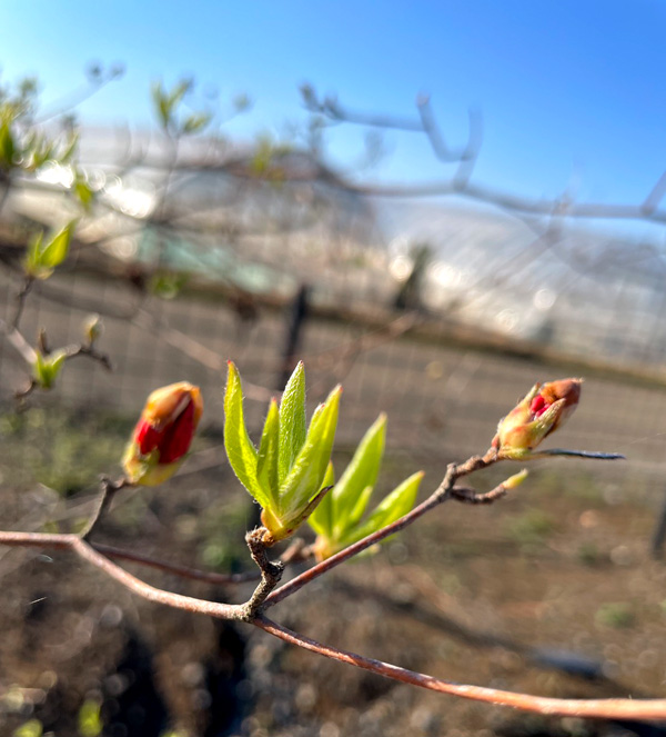 | バイカツツジが目を覚まし、気取った芽吹きです | ヤマツツジは明日にも咲きそう 新芽の彩って何て表現していいのか・・・綺麗 |