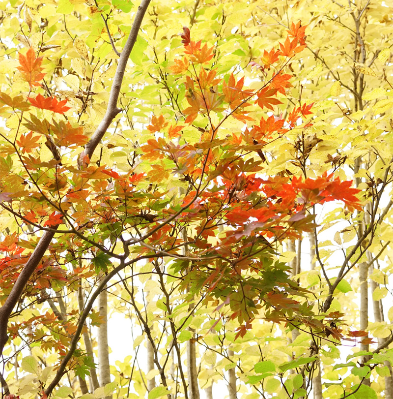 | ヒナウチワカエデやヤマコウバシの絶品紅葉(オーナー撮影) |