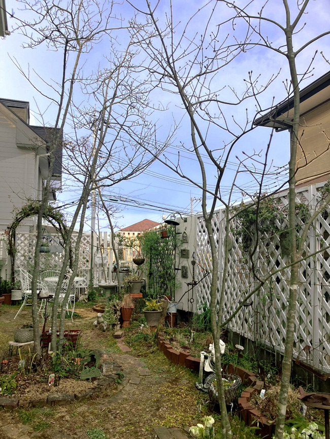 | 十数年前に美形のアオハダを植えてからの始まり アオダモx2、マルバノキ、ナツハゼ、シロモジ、ツリバナ、コウヤボウキ、コアジサイ、シュンラン、 アオハダx3です。 オーナーGreen大好き、キッチンもダイニングにもGreen,リビングも植物園、お花や薔薇も沢山植わってます。 芽吹いたら更新します、お楽しみに。 | |
