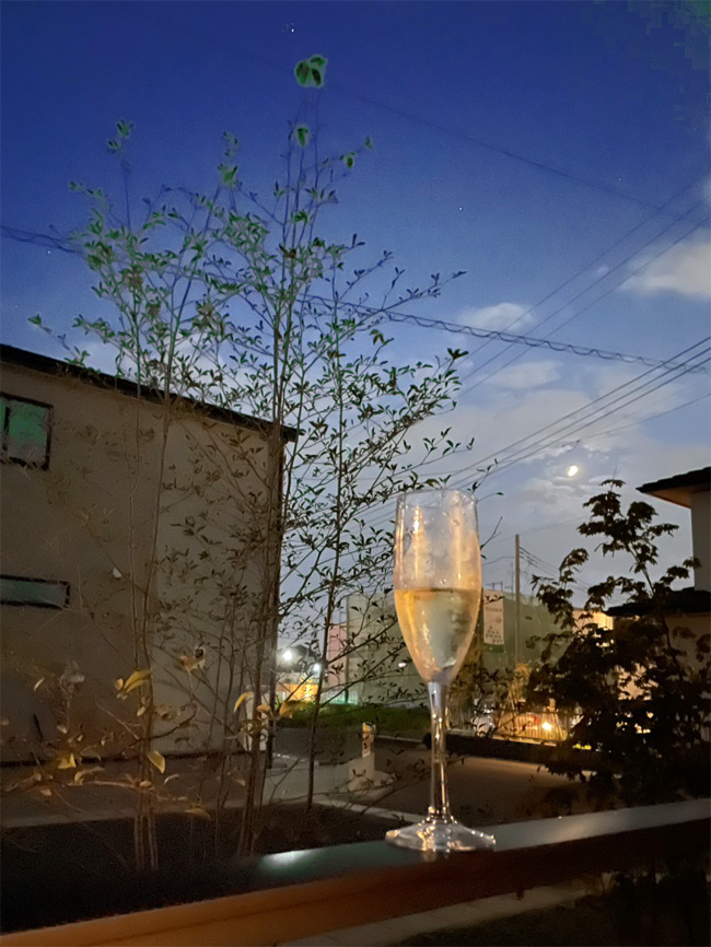 | ワインを頂きながら木々を眺め? 木々を眺めながらのワイン? どちらでもいいよネ〜 | |