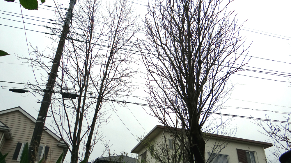 リョウブを撤去して紅葉の絶品なシラキ(右側)を植えてきました。左側は7m程の大株ウラジロの木です。